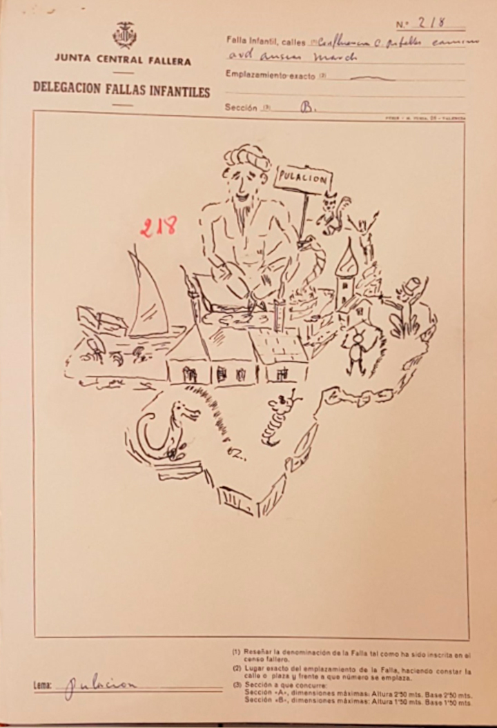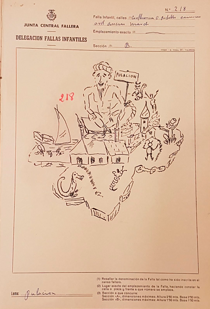 AÑO 1975FMI MARÍA NACHER GARCÍALEMA FALLA INFANTIL“POLUCIÓN”ARTISTA: LA COMISIÓN