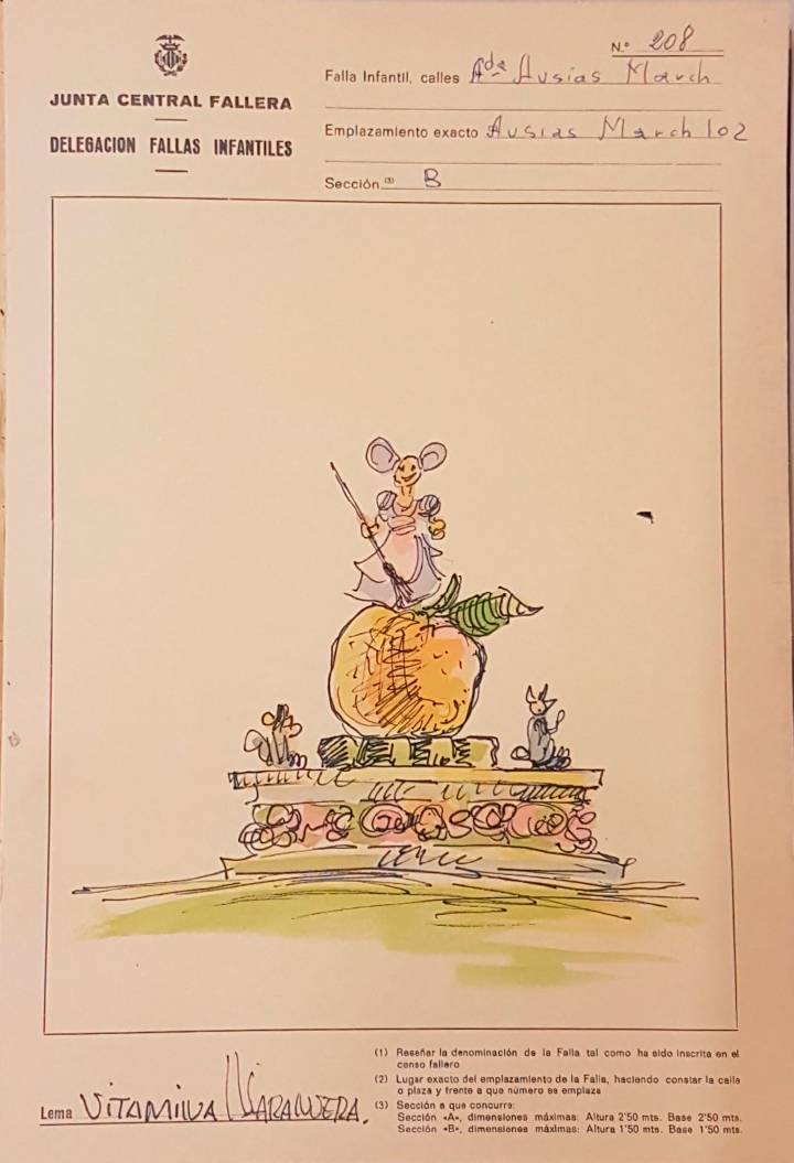 AÑO 1970FMI AMPARÍN PASCUAL BALLESTERLEMA FALLA INFANTIL“VITAMINA”ARTISTA: J. LARA NUERA