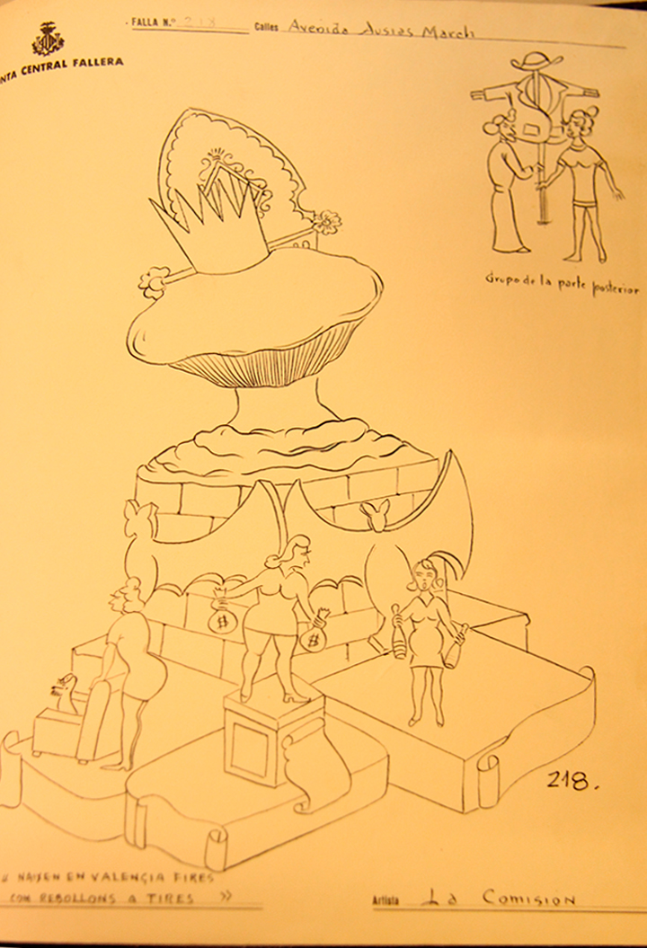 AÑO 1985FM Mª ESTHER DE LOS RIOS MODREGOLEMA FALLA GRANDE“ECONOMIA VALENCIANA”ARTISTA: LA COMISIÓN