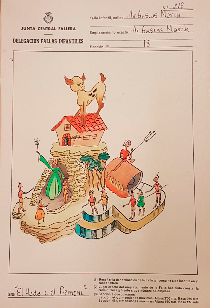 AÑO 1971FMI MILAGROS MURCIALEMA FALLA INFANTIL“EL HADA I EL DIMONI”ARTISTA: LA COMISIÓN