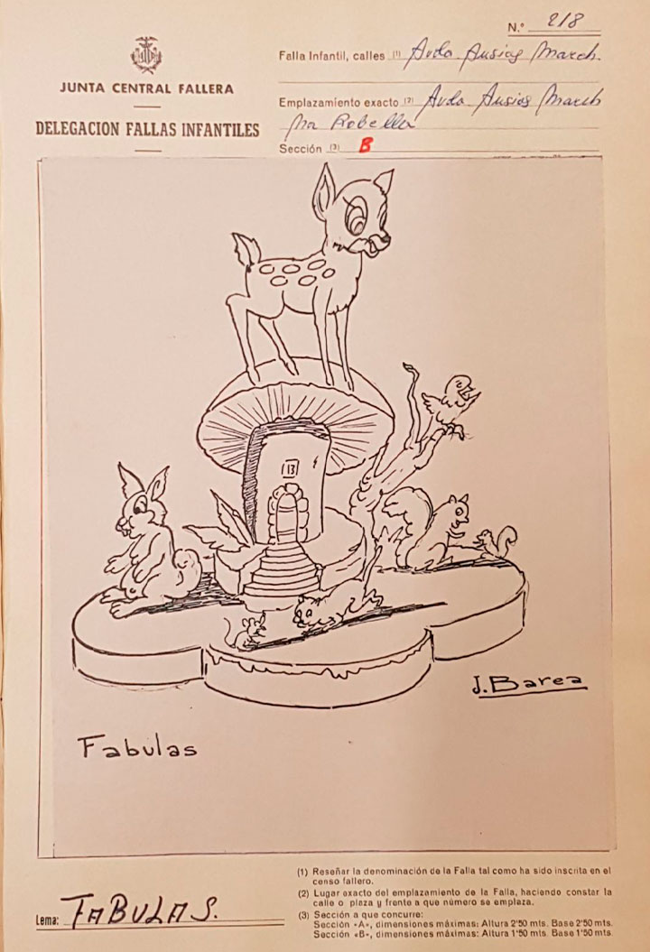 AÑO 1972FMI Mª JOSÉ BELDA SARRIÓLEMA FALLA INFANTIL“FÁBULAS”ARTISTA: J. BAREA