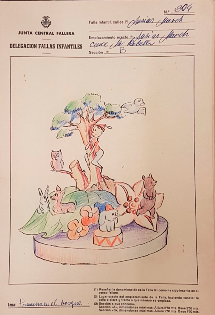 AÑO 1973FMI PATRICIA MARTÍNEZ CUENCALEMA FALLA INFANTIL“PRIMAVERA EN EL BOSQUE”ARTISTA: LA COMISIÓN