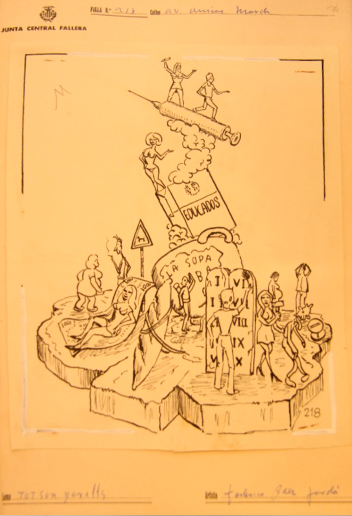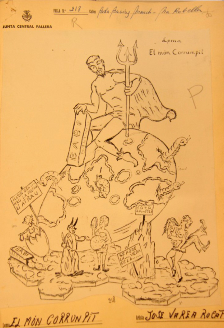 AÑO 1974FM Mª DOLORES MARTÍNEZ MURILLOLEMA FALLA GRANDE“EL MON CORROMPIT”ARTISTA: JOSÉ VAREA ROCAFULL