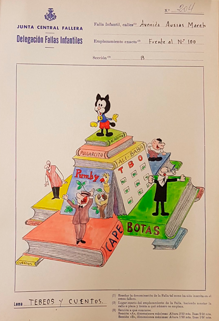 AÑO 1974FMI Mª JOSÉ MARTÍNEZ MEDINALEMA FALLA INFANTIL“TEBEOS Y CUENTOS”ARTISTA: LA COMISIÓN