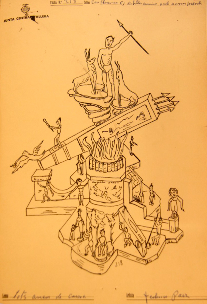 AÑO 1972FM INÉS MARTÍNEZ NAVARROLEMA FALLA GRANDE“ART O COMEDIA”ARTISTA: SALVADOR SANTAEULALIA