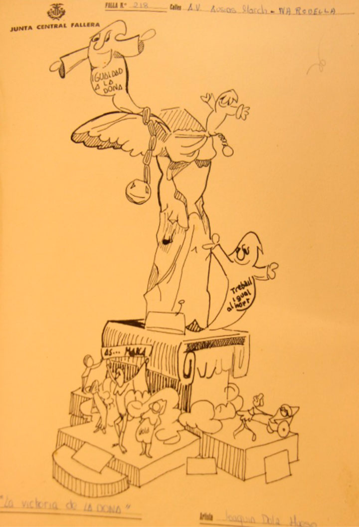 AÑO 1977FM PILAR GÓMEZ GIMÉNEZLEMA FALLA GRANDE“LA VICTORIA DE LA DONA”ARTISTA: JOAQUIN DOLZ HUESO