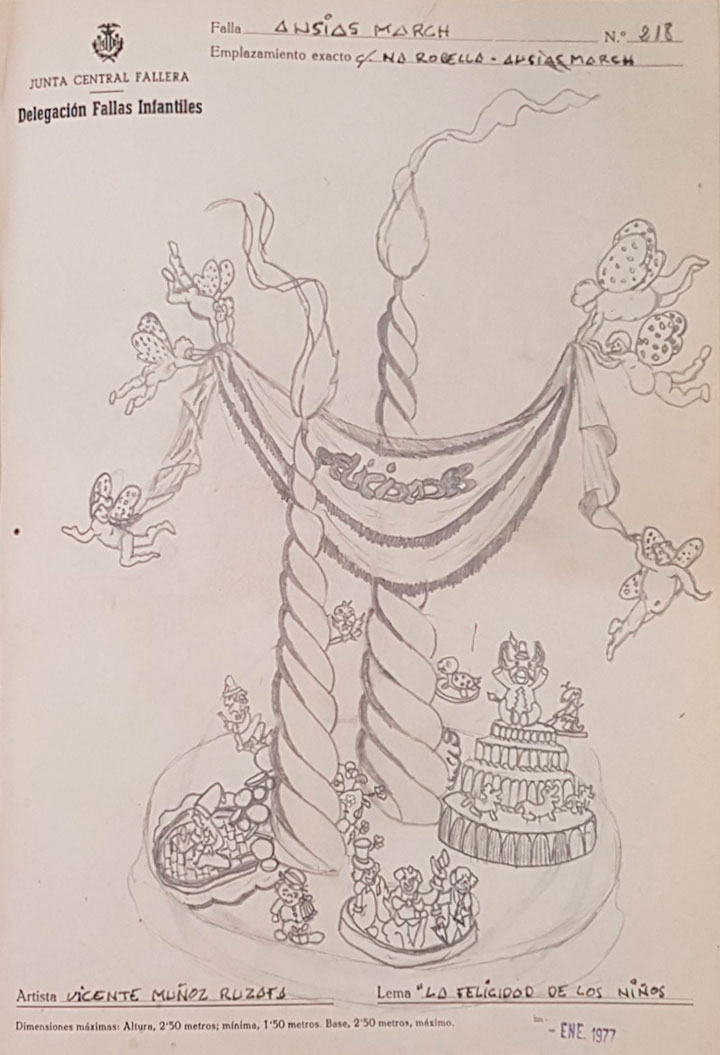 AÑO 1977FMI Mª JOSÉ SILVA CARDEÑOSALEMA FALLA INFANTIL“LA FELICIDAD DE LOS NIÑOS”ARTISTA:VICENTE MUÑOZ RUZAFA