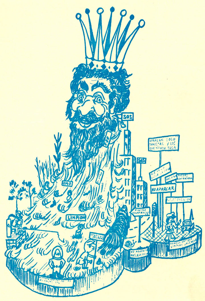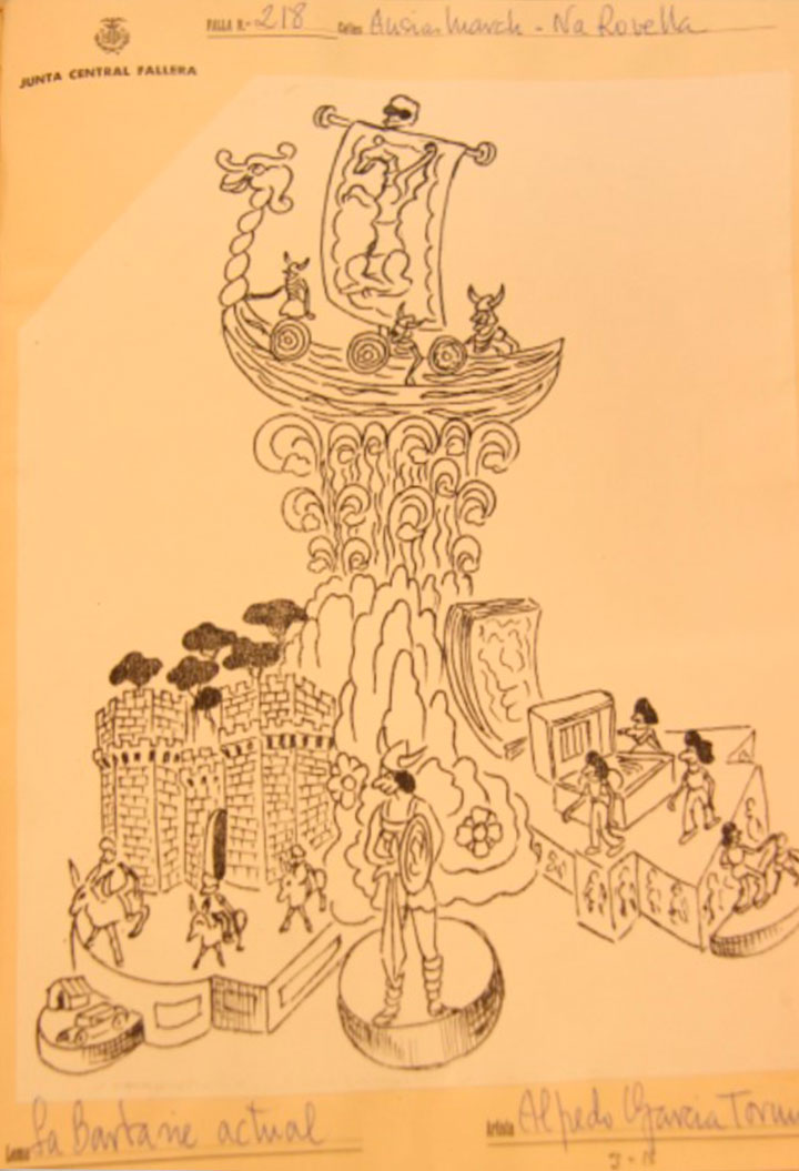 AÑO 1979FM ASUNCIÓN MOLTÓ MARTÍNEZLEMA FALLA GRANDE“LA BARBARIA ACTUAL”ARTISTA: ALFREDO GARCÍA TORMO
