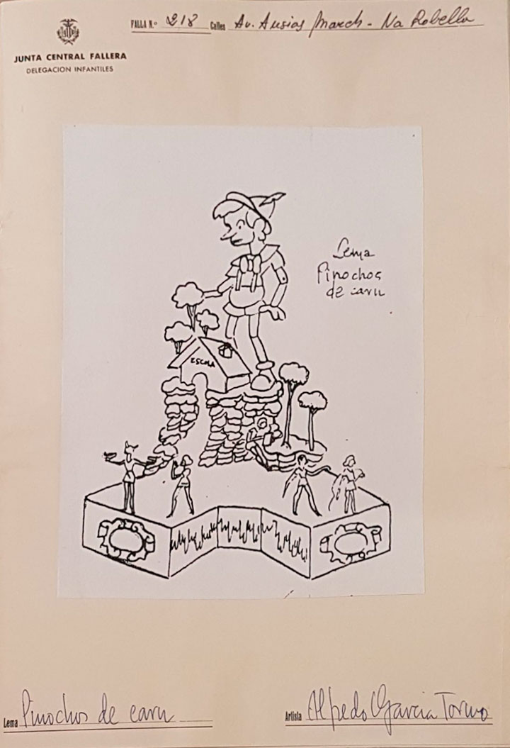 AÑO 1979FMI Mª ÁNGELES LUNA ROCALEMA FALLA INFANTIL“PINOCHOS DE CARNE”ARTISTA: ALFREDO GARCÍA TORMO