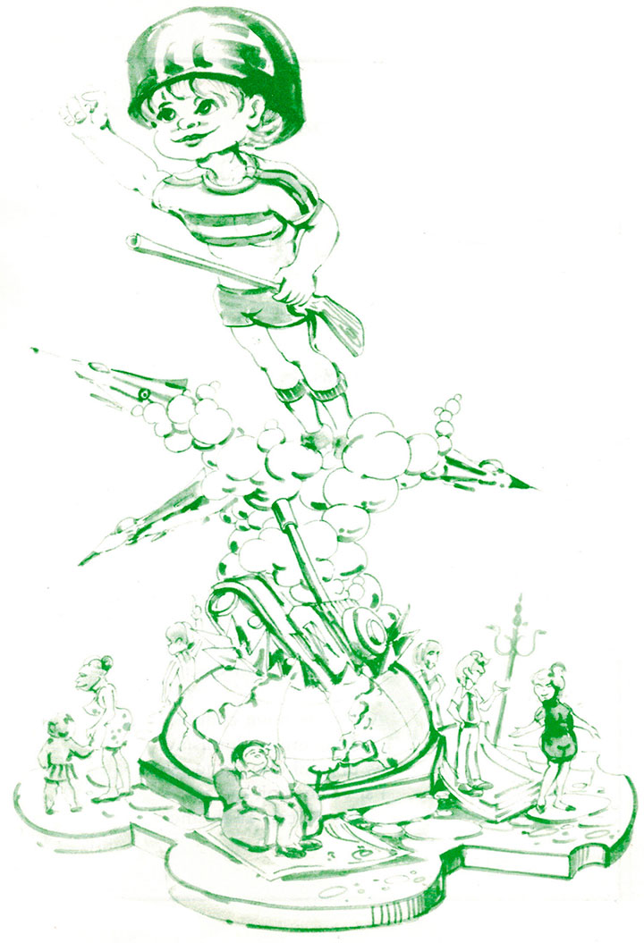 AÑO 1987FMI LAURA CUCARELLA CABAÑASLEMA FALLA INFANTIL“L’APLICASIÓ INFANTIL”ARTISTA: J. CALANDIN VELILLA