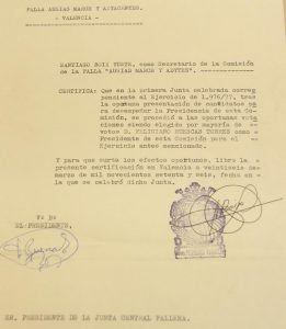Cómo podéis imaginar conseguir información de esos primeros diez años ha sido una tarea bastante difícil, a continuación, observaréis una serie de fotografías y documentos que hemos podido rescatar de los archivos de Junta Central Fallera y de particulares.