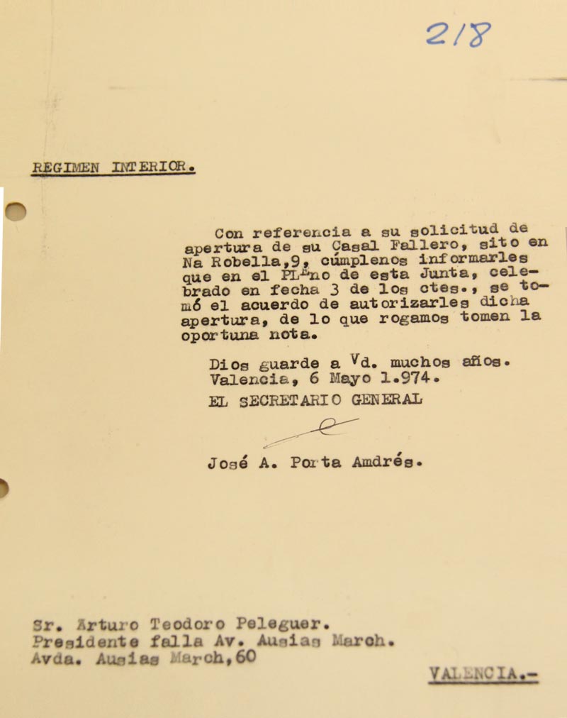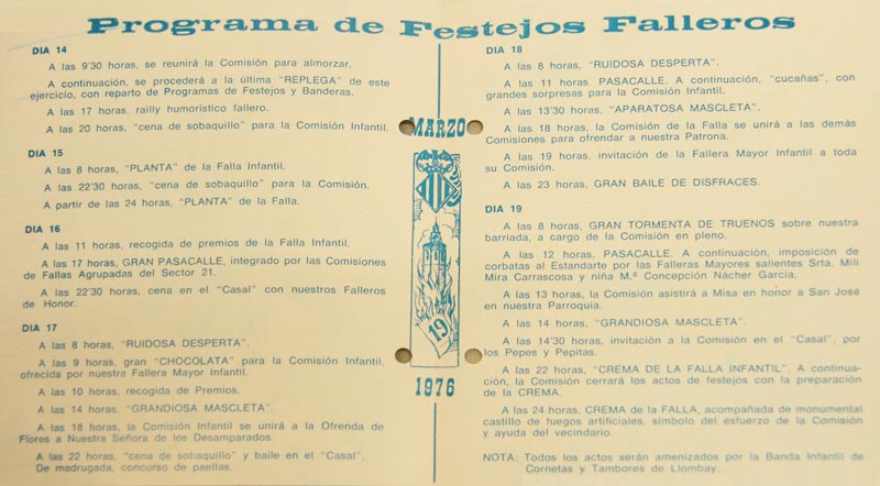 Cómo podéis imaginar conseguir información de esos primeros diez años ha sido una tarea bastante difícil, a continuación, observaréis una serie de fotografías y documentos que hemos podido rescatar de los archivos de Junta Central Fallera y de particulares.